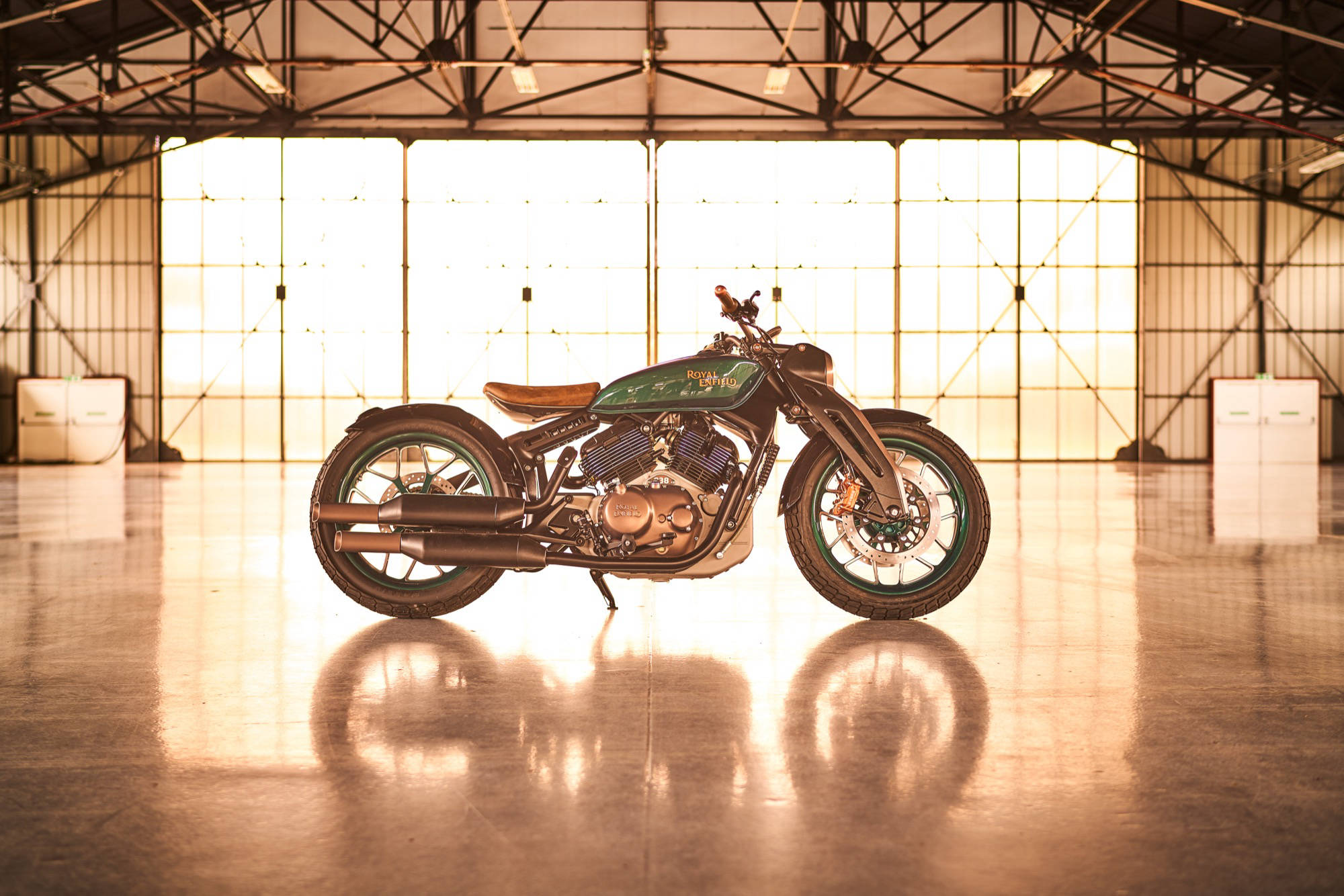 Původní model KX byl výchozím bodem pro koncept motocyklu, který odráží popularitu „retro-moderních“ motocyklů. Zakřivený tvar KX byl zkombinován s moderními konstrukčními metodami a neobyčejnými materiály jako je měď a kůže. Oba týmy – jeden v Indii a druhý v novém technologicko-vývojovém centru Royal Enfield ve Velké Británii – společně zahájily v dubnu 2018 práce na studii motocyklu, jehož základem měl být dvouválcový motor do V.
