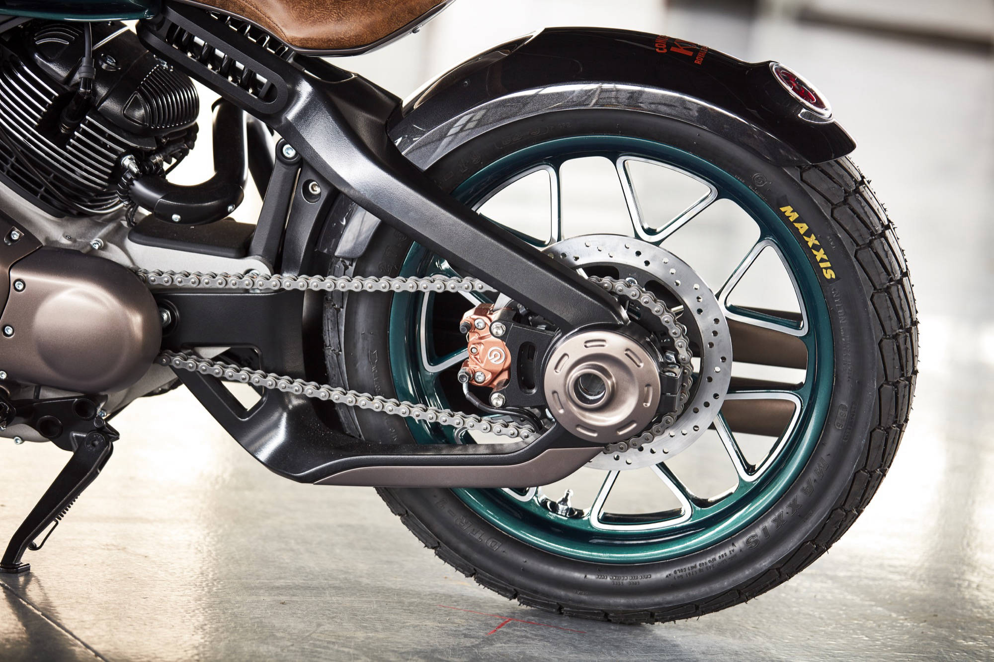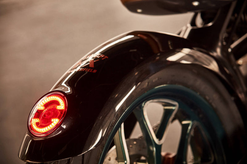 Přední i zadní světla obsahují stylizovanou variantu starého „Redditch E". Konfigurace rámu umožnila začlenit i airbox do nosných prvků, vzadu pak výrazně vystupuje konzole sedadla. Čistý vzhled podtrhují kompaktní, CNC obráběné díly, jako jsou kola a hlavy válců. Klasické zeleno-černé barevné schéma je pro značku typické, také ručně malované pruhy v barvě mědi, černěné části motoru a tlumiče výfuku; sedadlo a rukojeti jsou pak potaženy kůží v barvě vlašských ořechů.