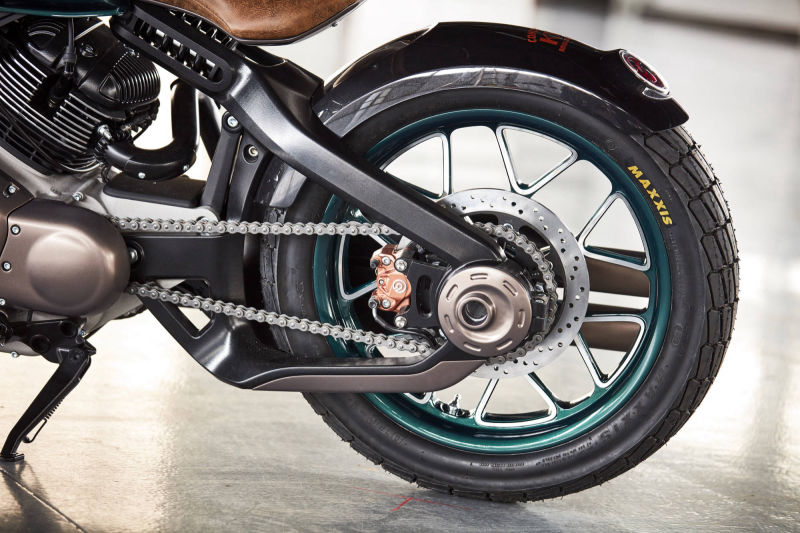 Bylo vytvořeno několik studií, ke kterým byly vyrobeny hliněné modely v měřítku 1:1. Z nich byly vybrány dvě varianty, jedna v neoklasicistním stylu, druhá futuristická. Dokončený koncept odhalený na EICMA 2018 byl unikátní kombinací obou návrhů. Nápadná je především přední vidlice, moderní interpretace předního světlometu z meziválečného období a jedinečný vzhled „hardtailu“ s jednostrannou zadní kyvnou vidlicí s letmo uloženým kolem. Pozoruhodný je též zadní centrální tlumič, který je však integrovaný v rámu – skrytý a přesto viditelný jako nepřehlédnutelný designový prvek.