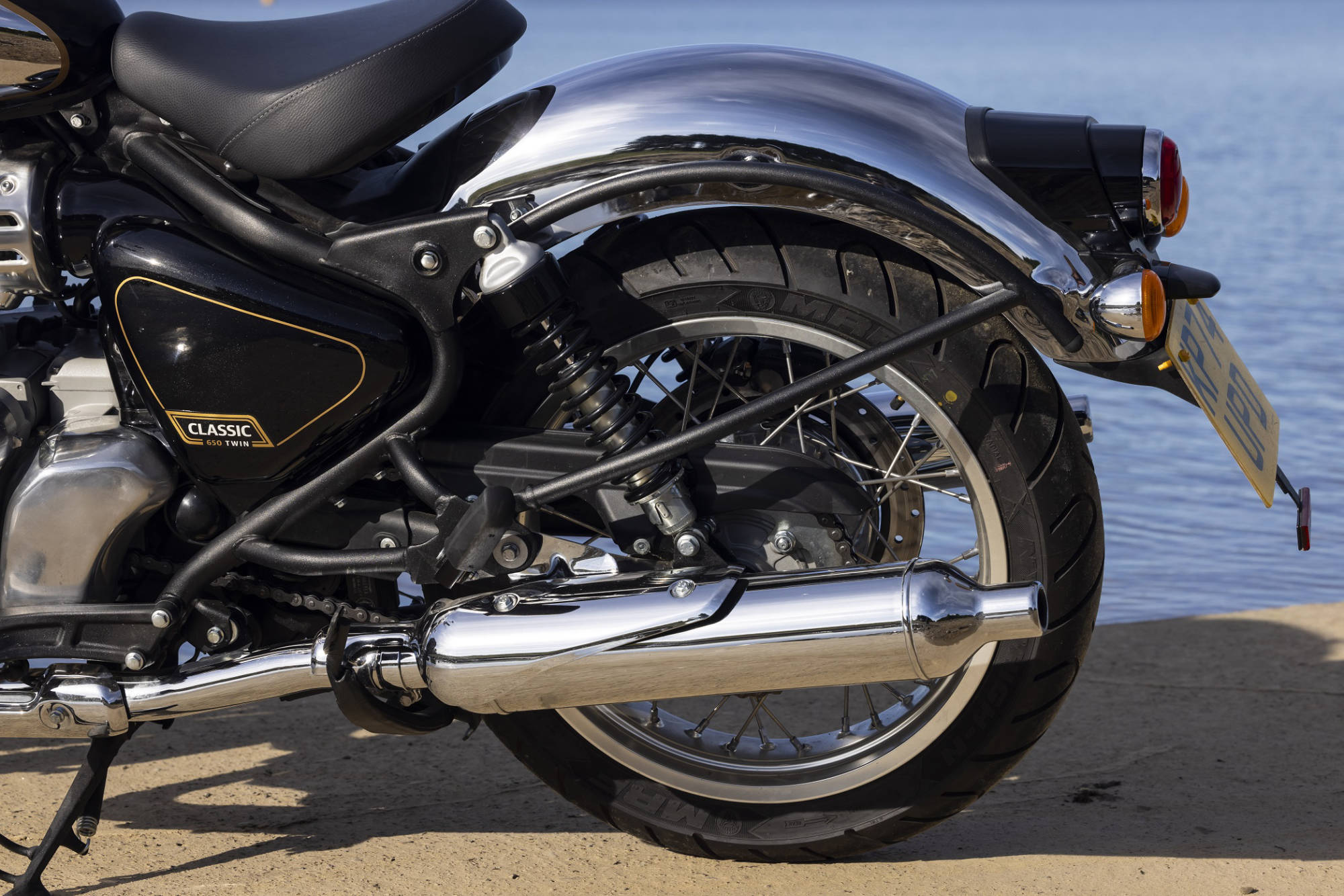 Nový Classic 650 ukazuje charakteristického ducha rodiny Classic, ale v dvojnásobné míře. Jeho vznešená, aerodynamická silueta je poháněna oslavovaným dvouválcovým motorem 650 od Royal Enfield, což poskytuje jízdu, která je jak rychlá, tak elegantní. Zatímco zůstává věrný rysům rodiny Classic, Classic 650 nabízí jezdci silnou novou kombinaci starosvětské estetiky a bez námahy poskytované síly. Impozantní na pohled, ale přívětivý k jízdě – to je jednoznačně Classic, který zůstává čistý do samotného jádra.